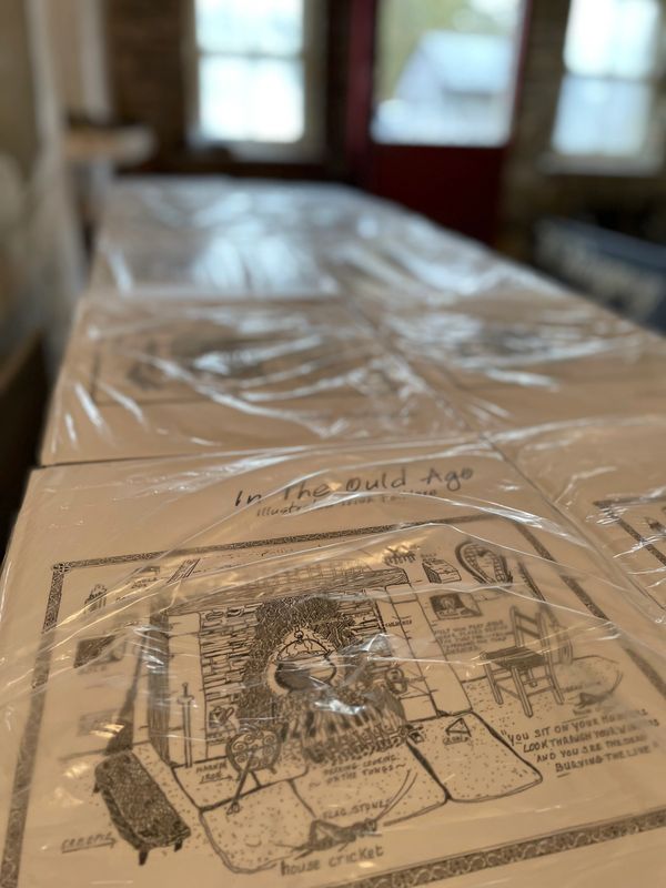 In The Ould Ago, meaning 'a long time ago', is a book of Illustrated Irish Folklore book by Johnny McKeagney. Comprising two hundred intricately hand-drawn illustrated pages of Irish traditions, crafts, history, emigration stories, countryside, wildlife, myths and customs it is all sewn together in a case-bound hardback A3 size cover.