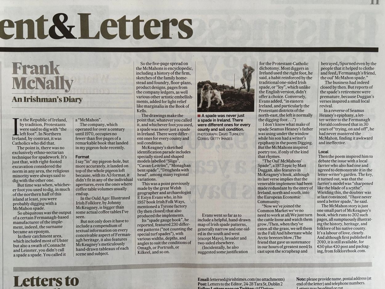 "The McMahon story is just one small part of McKeagney's book, which runs to 202 such pages, all sumpuously illustrating the history, heritage, and folklore of his native county. It's a labour of love, clearly." Frank McNally, An Irishman's Diary in The Irish Times 6th February 2025