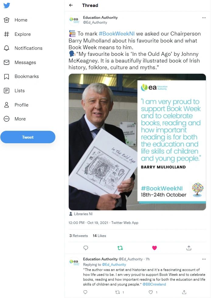 In The Ould Ago has been selected for admission to many Ivy League university libraries, including Harvard, Notre Dame, UCLA and Boston College, as well as New York Public Libraries and Library of Congress in Washington. Johnny's illustrated and written collection is preserved in the Fermanagh museum while his recorded material is being digitised by the UCD Folklore Department for the National Irish Archive.