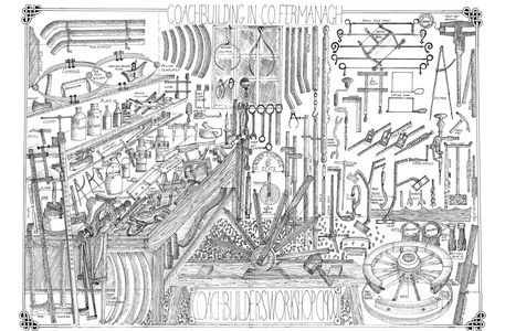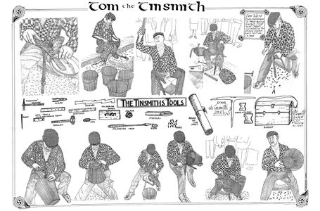 With the aid of camera, recording device and pen, he has pieced together much of the fabric of tradition in the places he has visited. The skills of craftsman, draughtsman and artist which he combines are used to great effect in the richly-detailed and frequently humorous tapestries he has drawn. The passion and excitement of uncovering an ancient monument, piecing together the former outline and function of a building or object, recording a distant craft process or local legend, all are vividly expressed in John McKeagney’s drawings. They form a unique and invaluable pictorial record of Fermanagh’s hidden past.