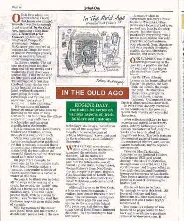 The business of recording folklore and folk life is an activity that is not confined to customary working hours. In truth, for that rare breed of skilled practitioner such as John McKeagney, it is a vocation in thrall to neither the time of day or the season. It arises from an instinctive sense of curiosity and ever expanding engagement with people, artefacts and environment.